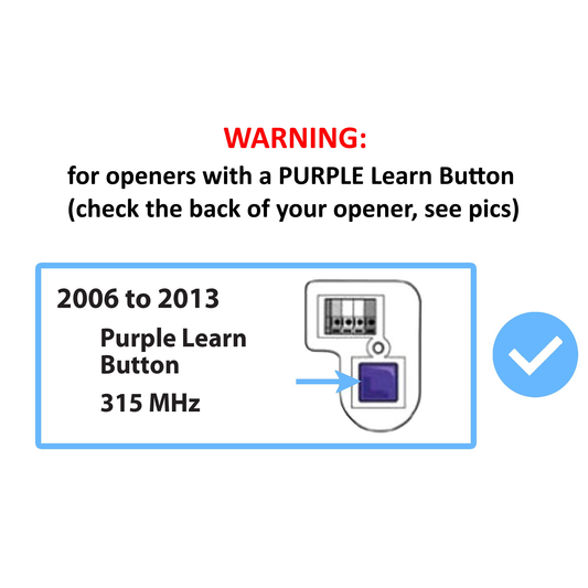 Sears Craftsman Garage Door Opener Remote 139.53753 HBW2028 LiftMaster 371LM 373LM Chamberlain 950CD 953CD Purple Learn Button 315MHz