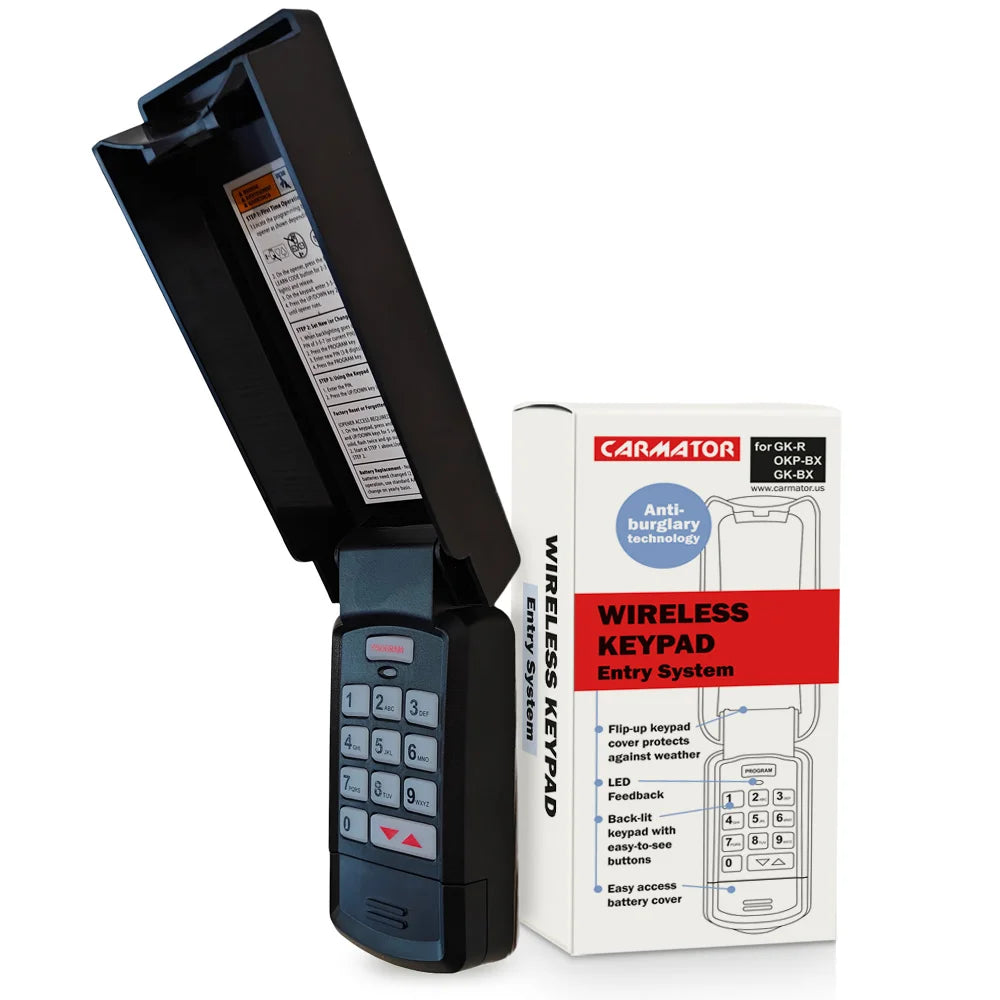 The Carmator universal garage door opener keypad features the latest technology that reduces radio interference and protects your garage by changing the access code every time.