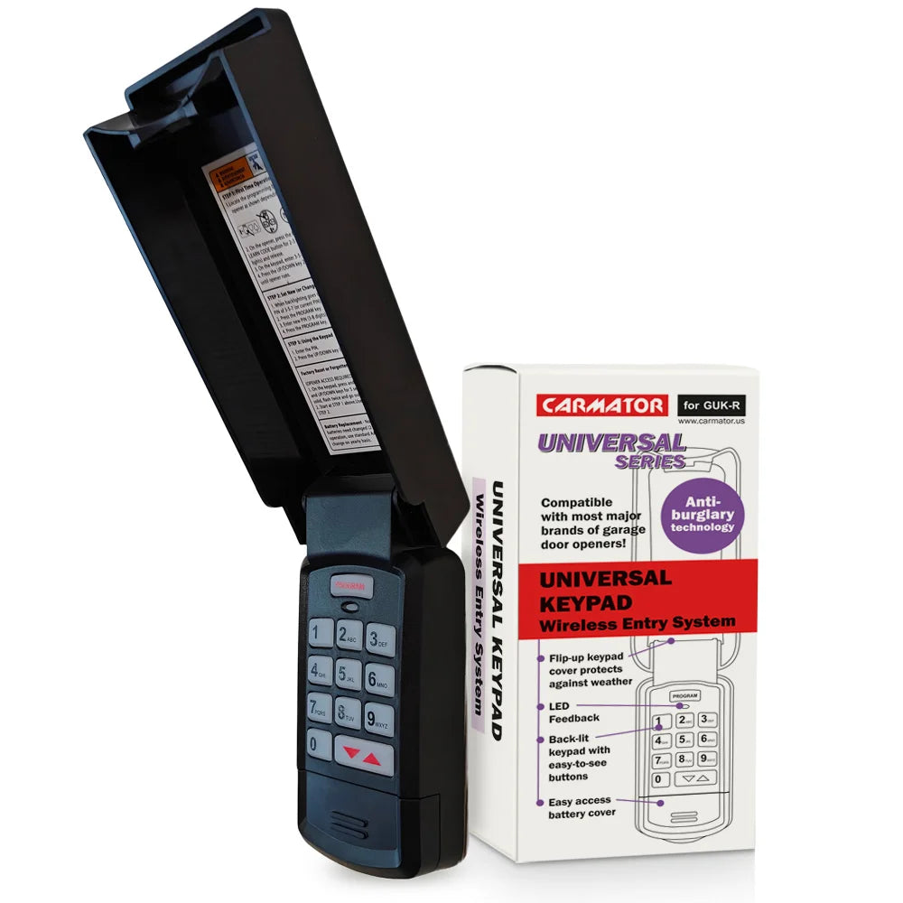 The Carmator universal garage door opener keypad features the latest technology that reduces radio interference and protects your garage by changing the access code every time.