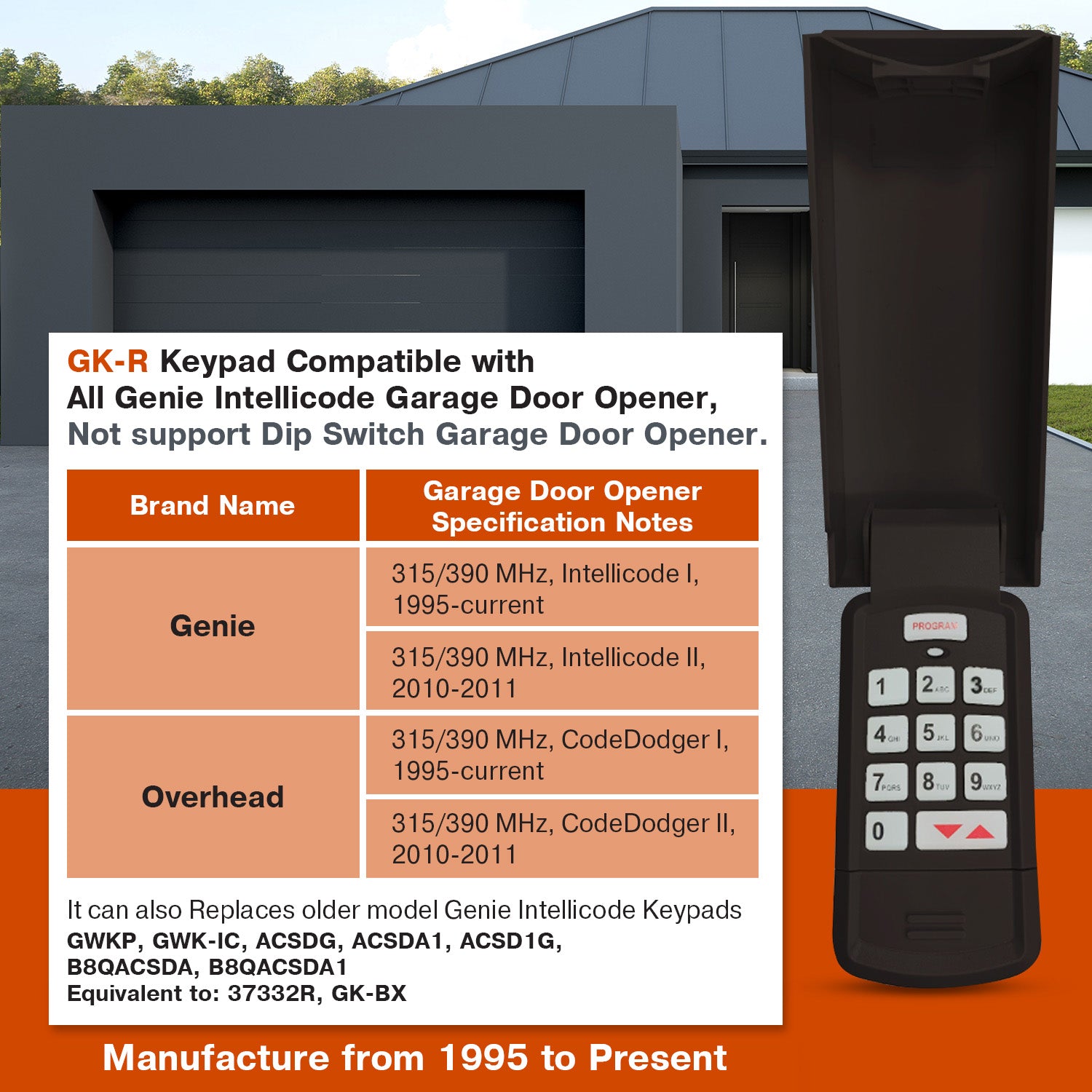 Universal Keypad Garage Door Opener, Compatible for All Genie Intellicode and Overhead Door CodeDodger technology, Replacement GK-R, 37332R, GK-BX, OKP-BX, GWKP, GWK-IC, ACSDG, ACSDA1, ACSD1G, B8QACSDA etc
